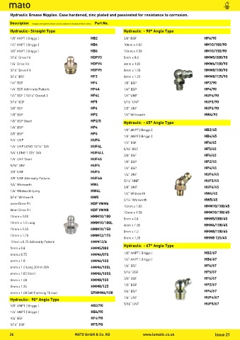 Hydraulic Grease Nipples. Case hardened, zinc plated and passivated for resistance to corrosion.